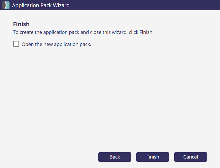 Note: You can check the box to open the new application pack in the Application Pack Manager to make additional changes if you would like.
