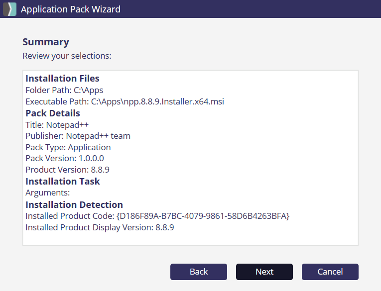 Once you've confirmed the correct command to silently install the application, follow these steps to build the Application Pack.