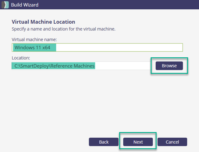 While SmartDeploy automatically stores reference machines in this location for organizational purposes, you can store virtual machines anywhere on your local SmartDeploy host. It's not required to save your VM in that location. If disk space is a potential issue, you may save the VM to a different drive.