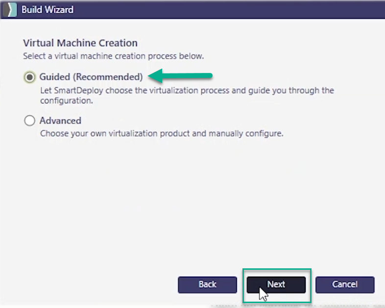- Choose Guided (Recommended) from the Virtual Machine Creation page then click Next.