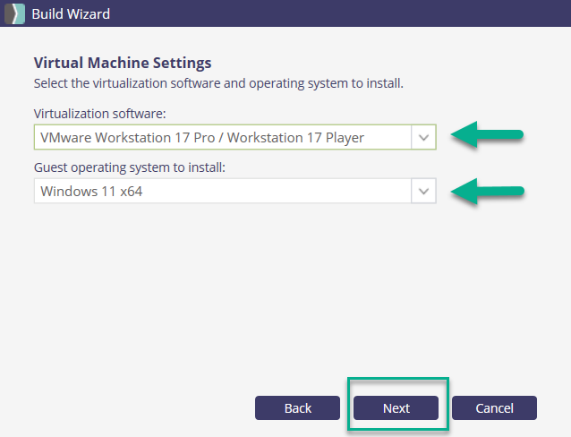 - Select your preferred virtualization software and the guest operating system that you plan to install, and then click Next.