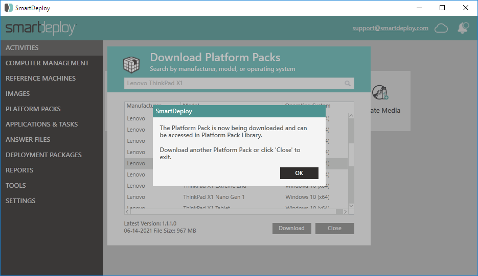 Download a Platform Pack from the SmartDeploy Library