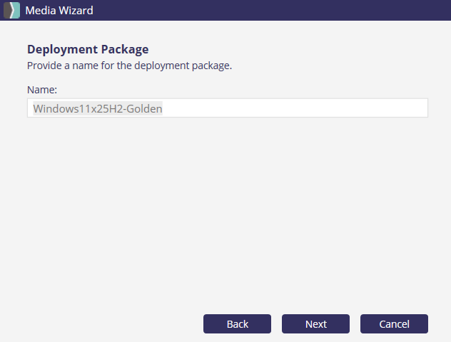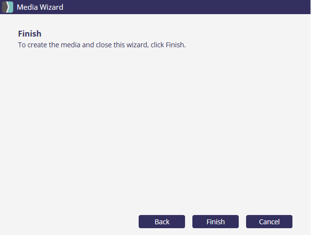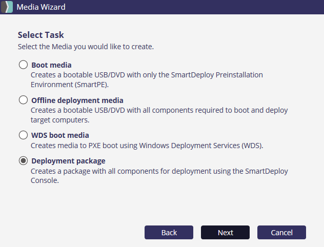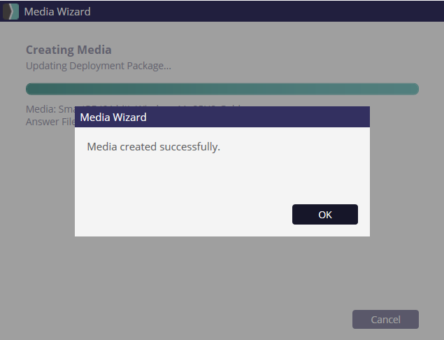 - After the Deployment Package is successfully created, click OK to close the Media Wizard.