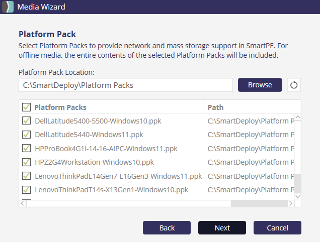 - Select the Platform Packs for any model and OS to which you plan to deploy, and then click Next.