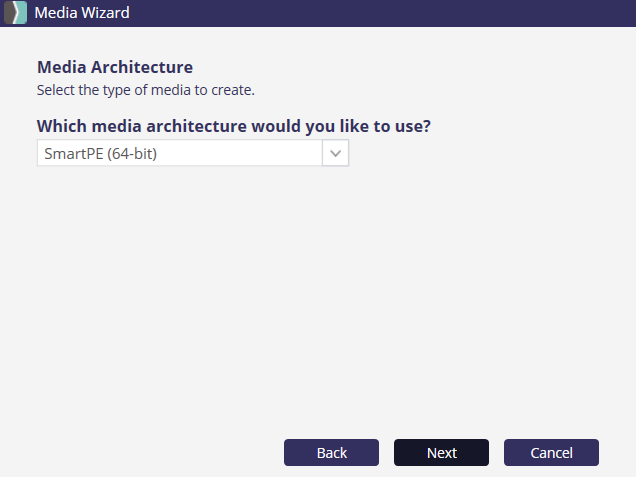 - On the Media Type page, select your preferred architecture for the boot image, and then click Next.