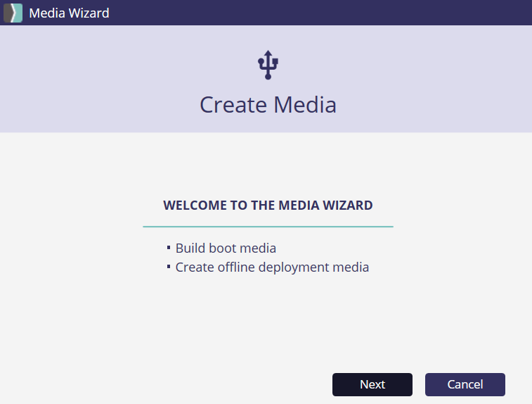 2. On the Welcome to the Media Wizard page, click Next.