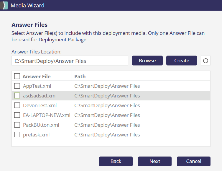 Note: Support for multiple answer files is available in SmartDeploy v3.0.1080 or newer for WDS boot media (support for USB and ISO was available as of 3.0.1030)