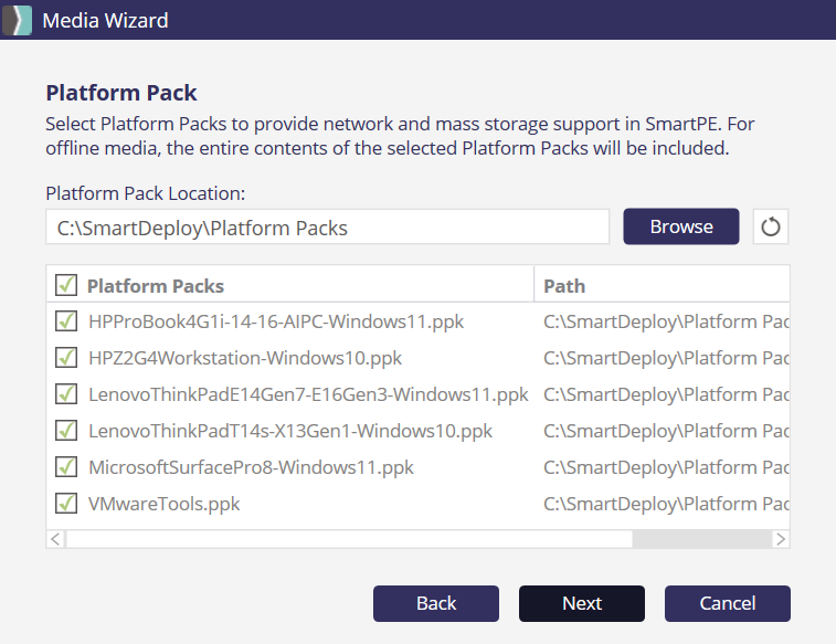 4. Select the Platform Packs for any model and OS to which you plan to deploy,