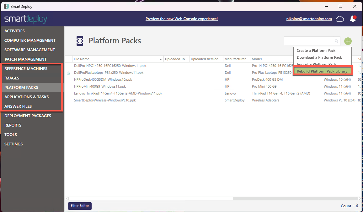 - If a library is missing any files, you can bring the files back into the application by "rebuilding the library". Note, you cannot rebuild the library for deployment packages, you will need to recreate deployment packages and boot media. You can read more about when it is necessary to rebuild your SmartDeploy media here: When do I need to re-create my SmartDeploy media?