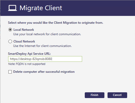 This article is intended to help you move your existing SmartDeploy Console Application from one host system to another as well as migrate your endpoints to the new SmartDeploy Console host. Make sure that both the Smartdeploy conosle, and clients are on version 3.0.2030 or newer first.