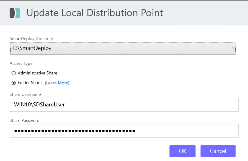 The SmartDeploy central server (where all of these files are created and managed) is also a local distribution point, and if you do not create any additional distribution points, all deployments will download deployment assets from the SmartDeploy central server, which will be selected by default.